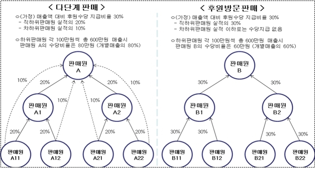 다단계판매와 후원방문판매의 후원수당 지급구조 비교